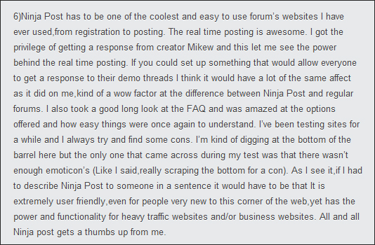 As a bonus, the forum helped her generate more revenue and raise the profile of her site. Then, her Ninja Post forum magically turned into a prince and they lived happily ever after.*